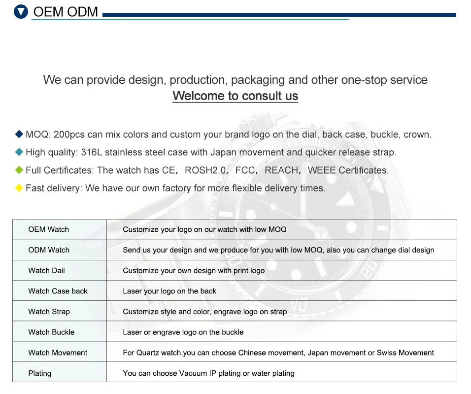 We are a factory. We have our own steel case factory and watch assembly factory. and we have been working with European watch brands for 15 years.